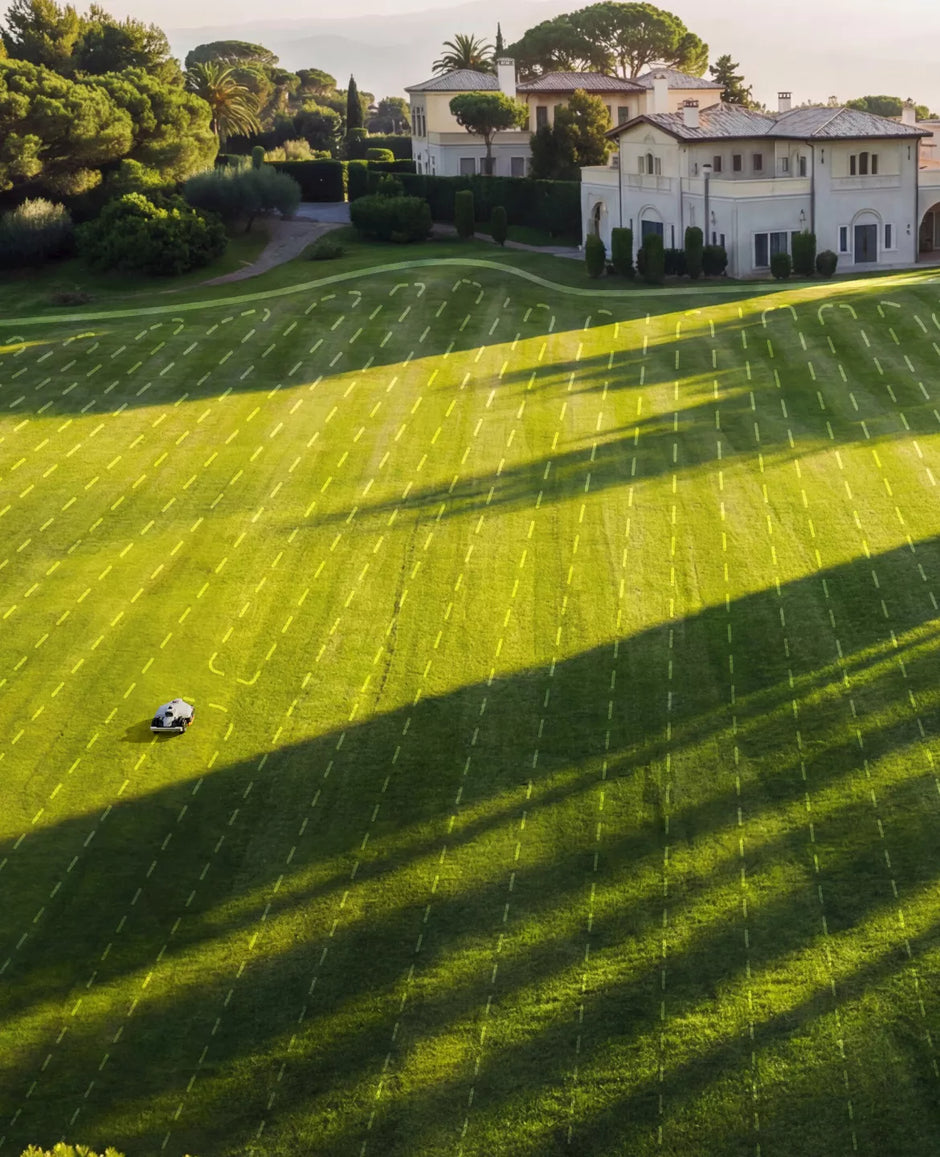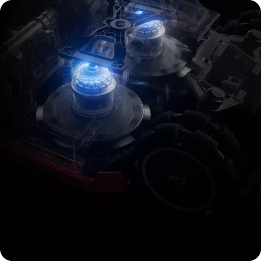 Deux moteurs haute puissance de 165 W à 6 lames travaillent avec la vision IA du robot tondeuse intelligent LUBA 3 AWD pour ajuster automatiquement vitesse et puissance selon la densité de l’herbe, optimisant ainsi la coupe et l’efficacité énergétique.