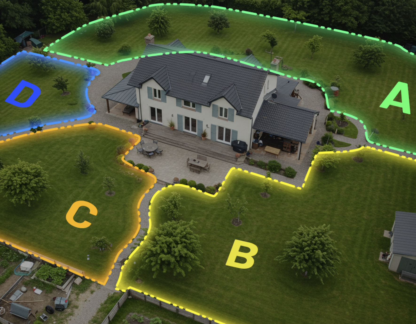 Gérez facilement jusqu’à 20 zones de tonte, y compris les jardins avant et arrière, les bords de route, ainsi que les zones interdites comme les piscines et les massifs de fleurs. Vous pouvez restaurer la carte d’origine en un seul clic, sans avoir à la redessiner.