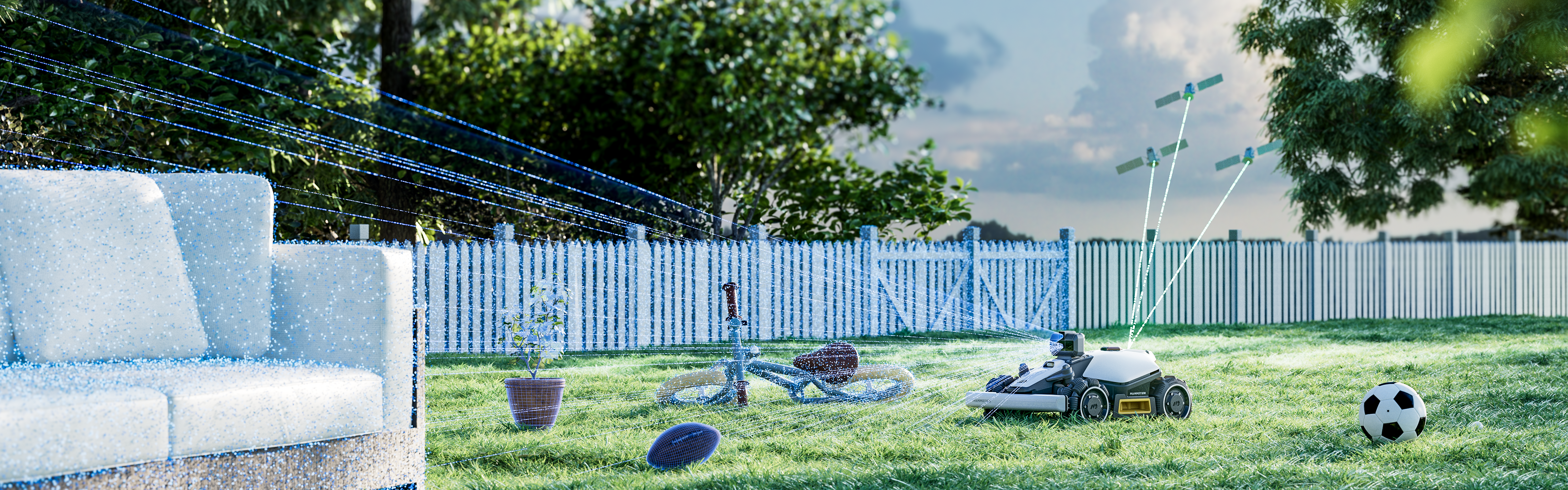 Grâce à son LiDAR à 144 faisceaux générant jusqu’à 200 000 points par seconde, le robot crée une carte 3D détaillée de votre pelouse en temps réel. Cela permet un positionnement au centimètre près, même dans des environnements complexes ou à faible signal, comme sous les arbres ou les trampolines.