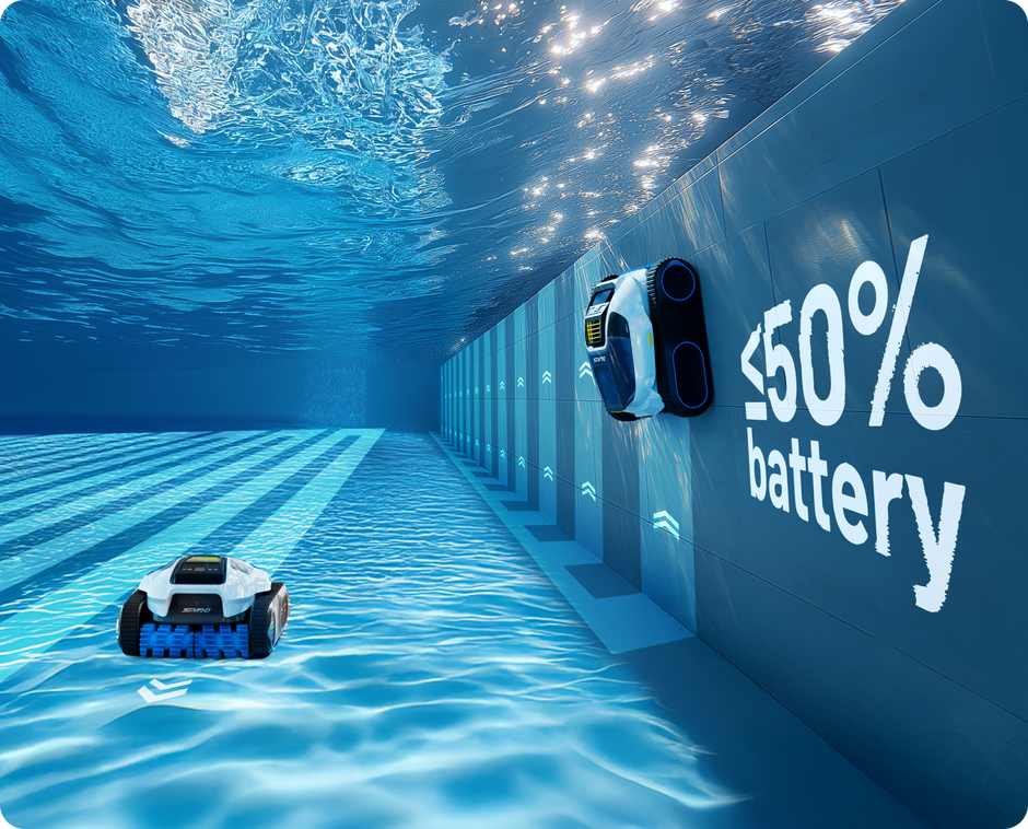 Nettoie d’abord les parois, puis passe au fond lorsque la batterie atteint 50 %.