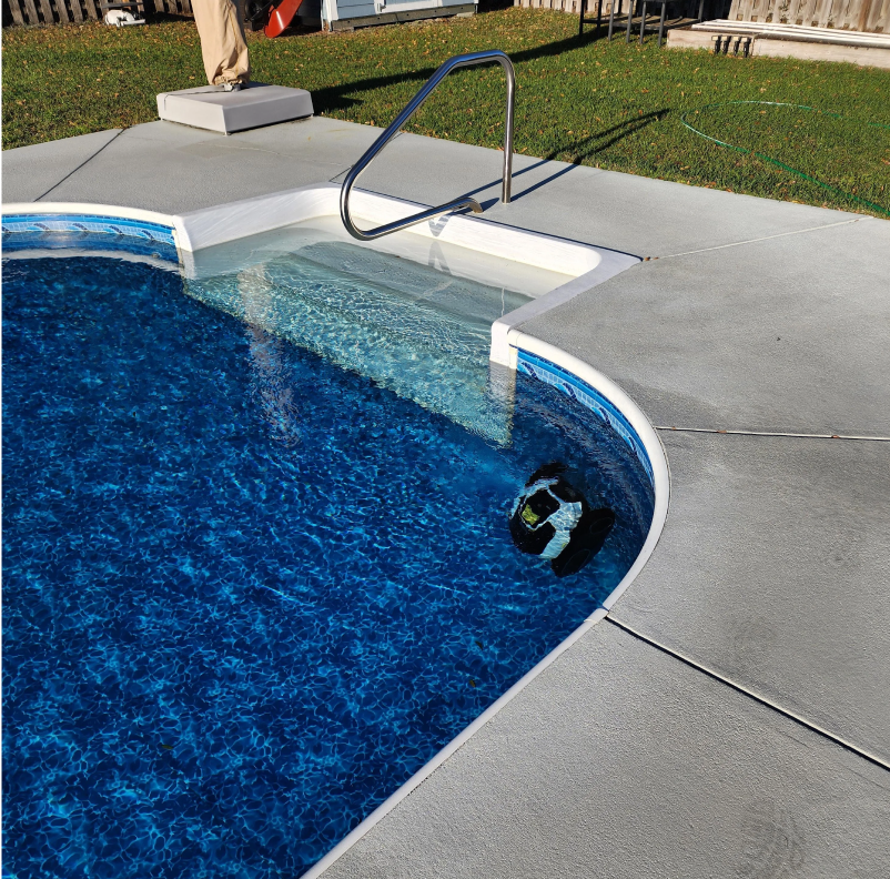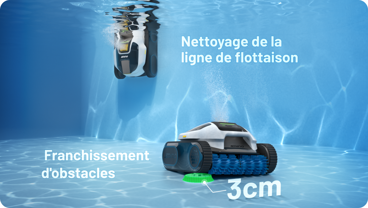 - Sol, parois et ligne d’eau nettoyés en un seul passage