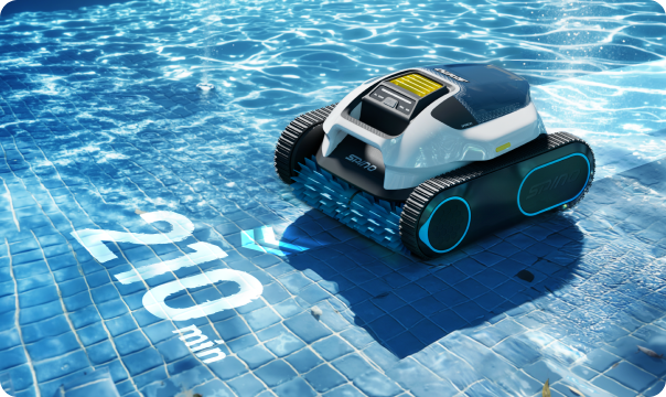 Nettoyage ciblé du fond avec une autonomie allant jusqu’à 210 minutes.