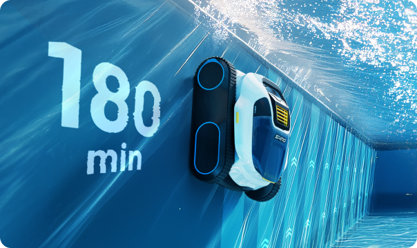 Nettoyage en profondeur des parois avec une autonomie allant jusqu’à 180 minutes.